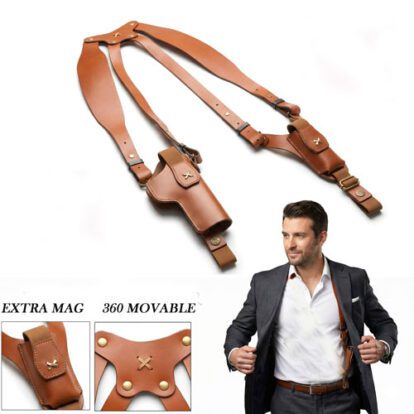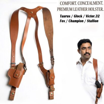 Premium Leather Shoulder Holster – Vertical Carry for Taurus,Stallion,Werywin , Glock Universal Pistol Holster