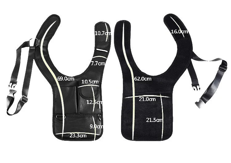 The shoulder sized handle can easily adjusted and easy to back up. It is hard tell the contents brought after you wear a coat, stealth and anti-theft feature.The back material is a breathable mesh, do not worry about the back will be hot for a long time.