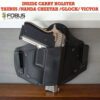 Holster Material – mold Injected Polymer. IWB with surface retention – retention is achieved by the holster firmly gripping the pistol between belt tension on the holster shell on one side, and the flexible holster backing made with mild non-slip surface on the opposite side.