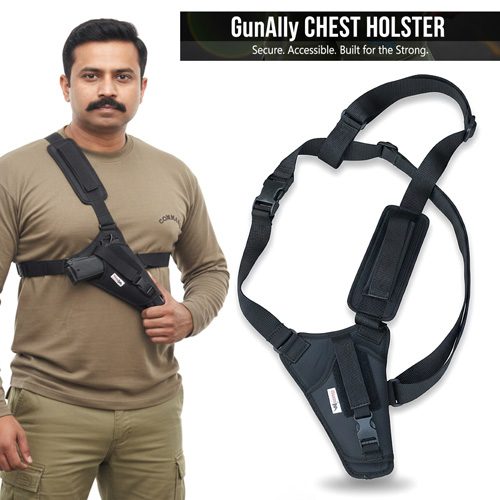 Description: Experience superior comfort and accessibility with the GunAlly Tactical Chest Holster. Designed for the serious enthusiast and everyday carrier, this holster offers a secure, center-chest carry position that ensures your firearm is always within reach when you need it most.