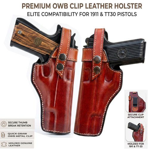 This versatile holster is specifically engineered to accommodate a wide range of iconic full-sized and mid-sized semi-automatic pistols, including: