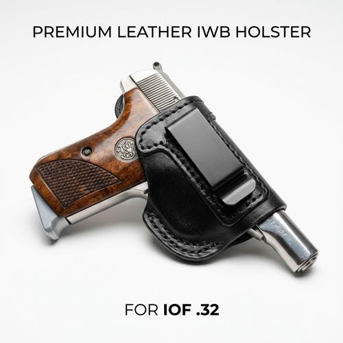 Be ready for any situation with our versatile and durable IWB Holster . Designed to fit a range of .32 caliber pistols such as the IOF Pistol.32/ Walther PPk Caliber or Similar Size this holster is perfect for gun enthusiasts. IWB Carry