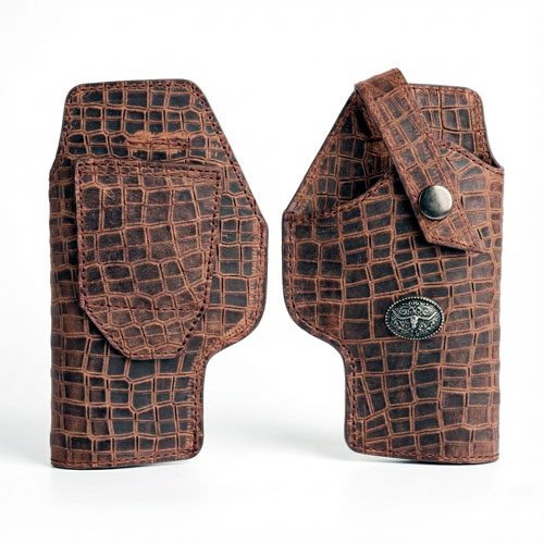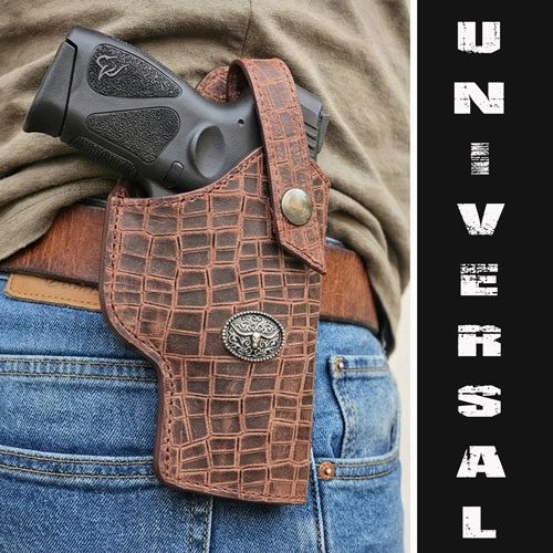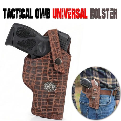 Upgrade your everyday carry with this stylish and rugged Universal OWB (Outside the Waistband) Holster. Crafted with a premium leather finish featuring a distinct crocodile texture, this holster combines tactical functionality with a classic western aesthetic. Designed for versatility, it provides a secure and comfortable fit for a wide range of medium to large-frame handguns.