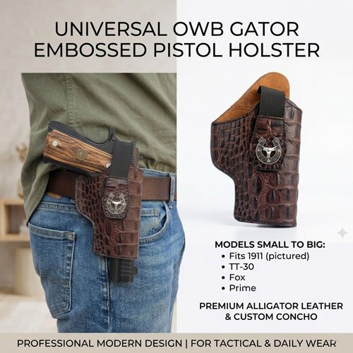 Elevate your everyday carry with this striking Universal OWB (Outside the Waistband) holster. Designed for the firearm enthusiast who demands both rugged functionality and distinctive style, this holster blends classic western aesthetics with modern versatility. Whether you are carrying a classic 1911 or a slim TT-30, this holster offers a secure fit with an unforgettable look.