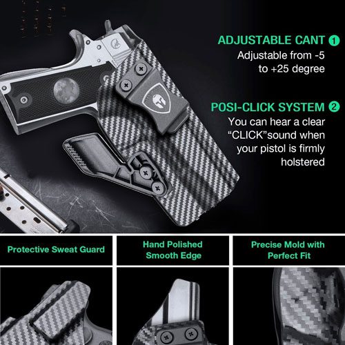 The IWB holster possess adjustable retention, Using Phillips screwdriver(not included), easily adjust -5 to +20 degrees cant.